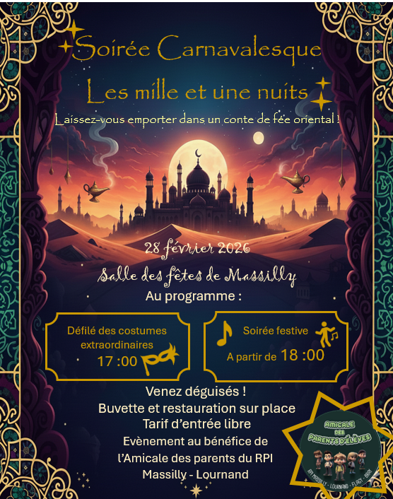 L’Amicale des parents d’élèves du RPI Massilly-Lournand-Bray-Flagy organise son carnaval à la salle des fêtes de Massilly le samedi 28 février.
